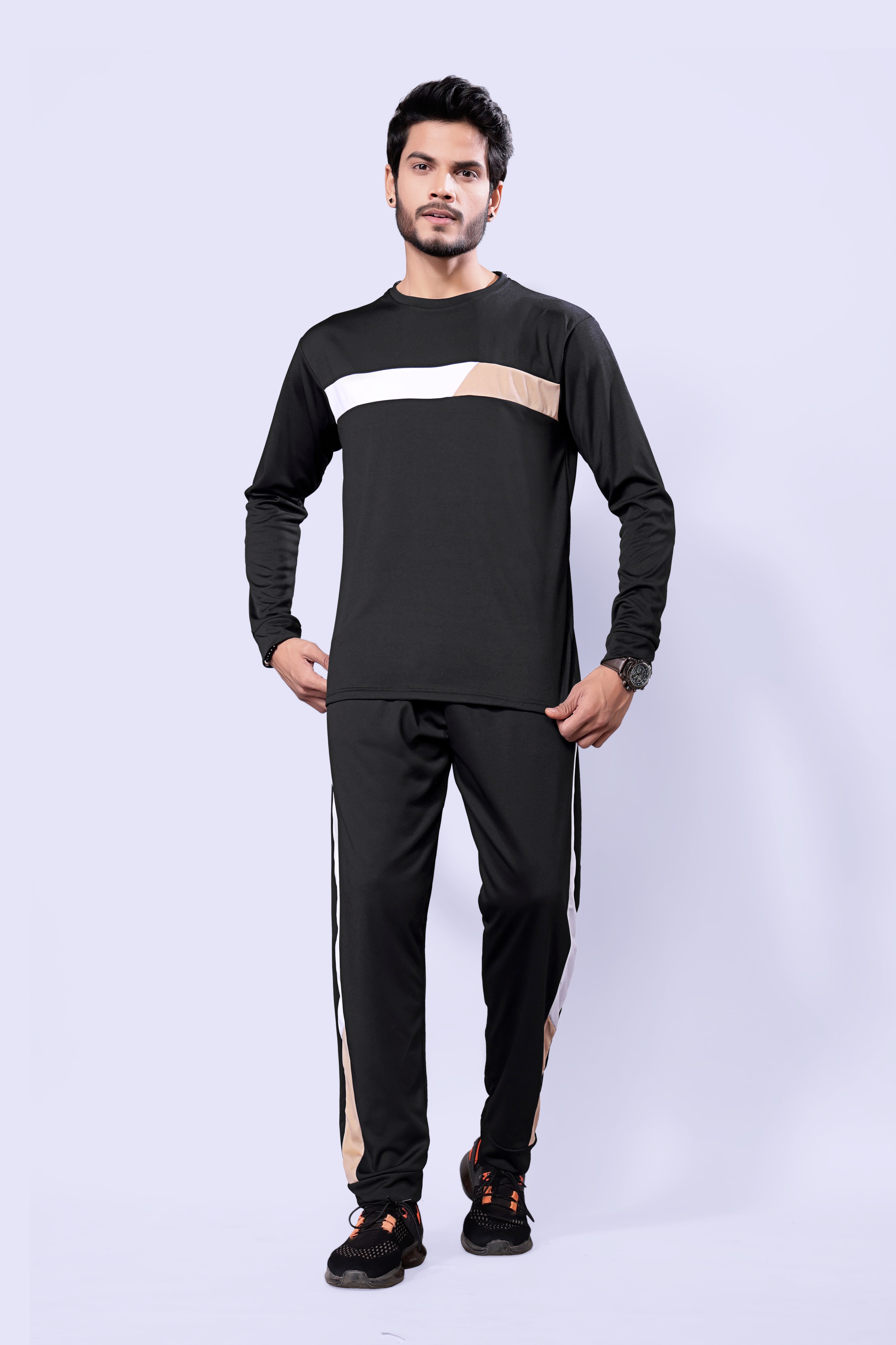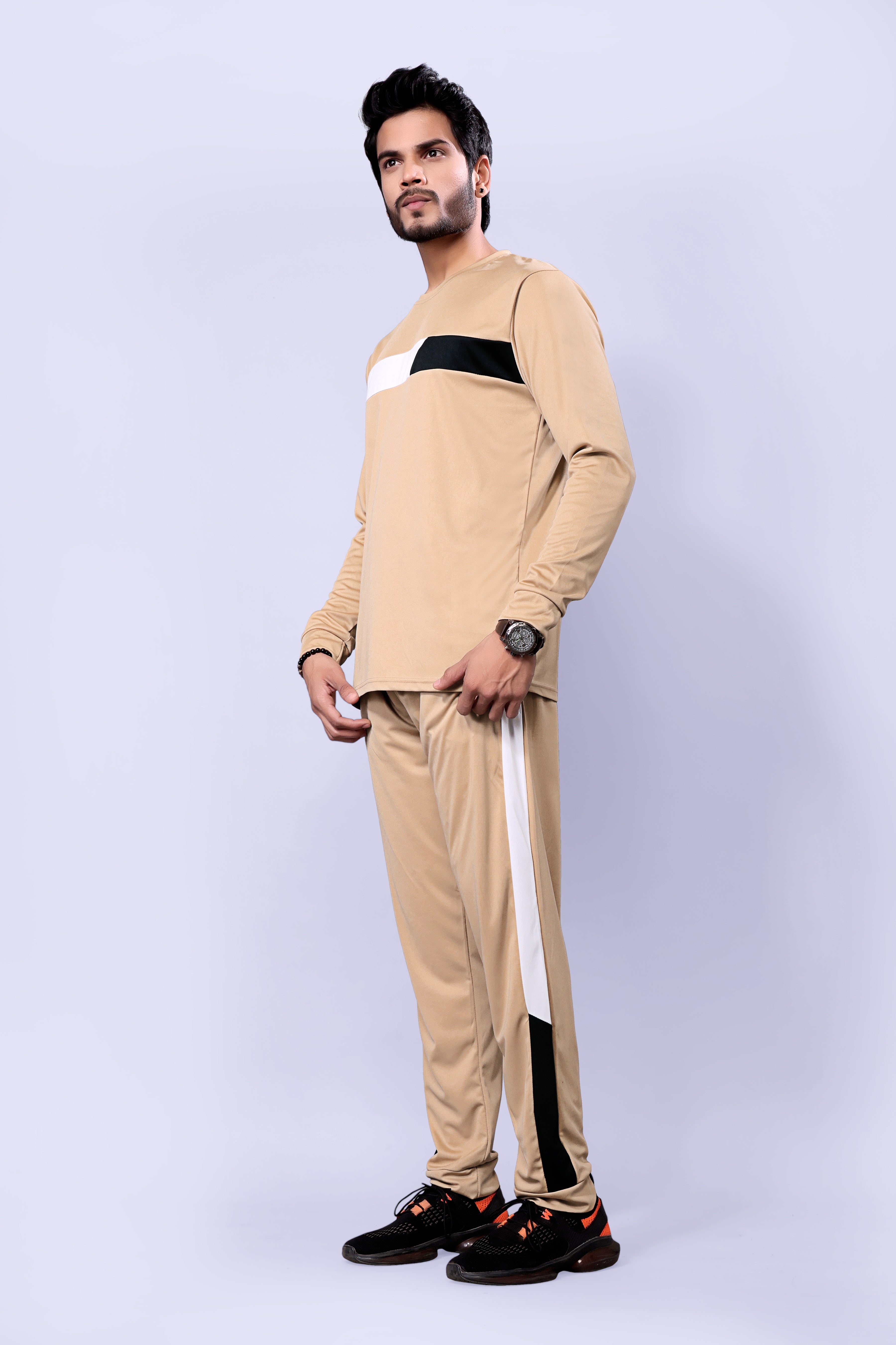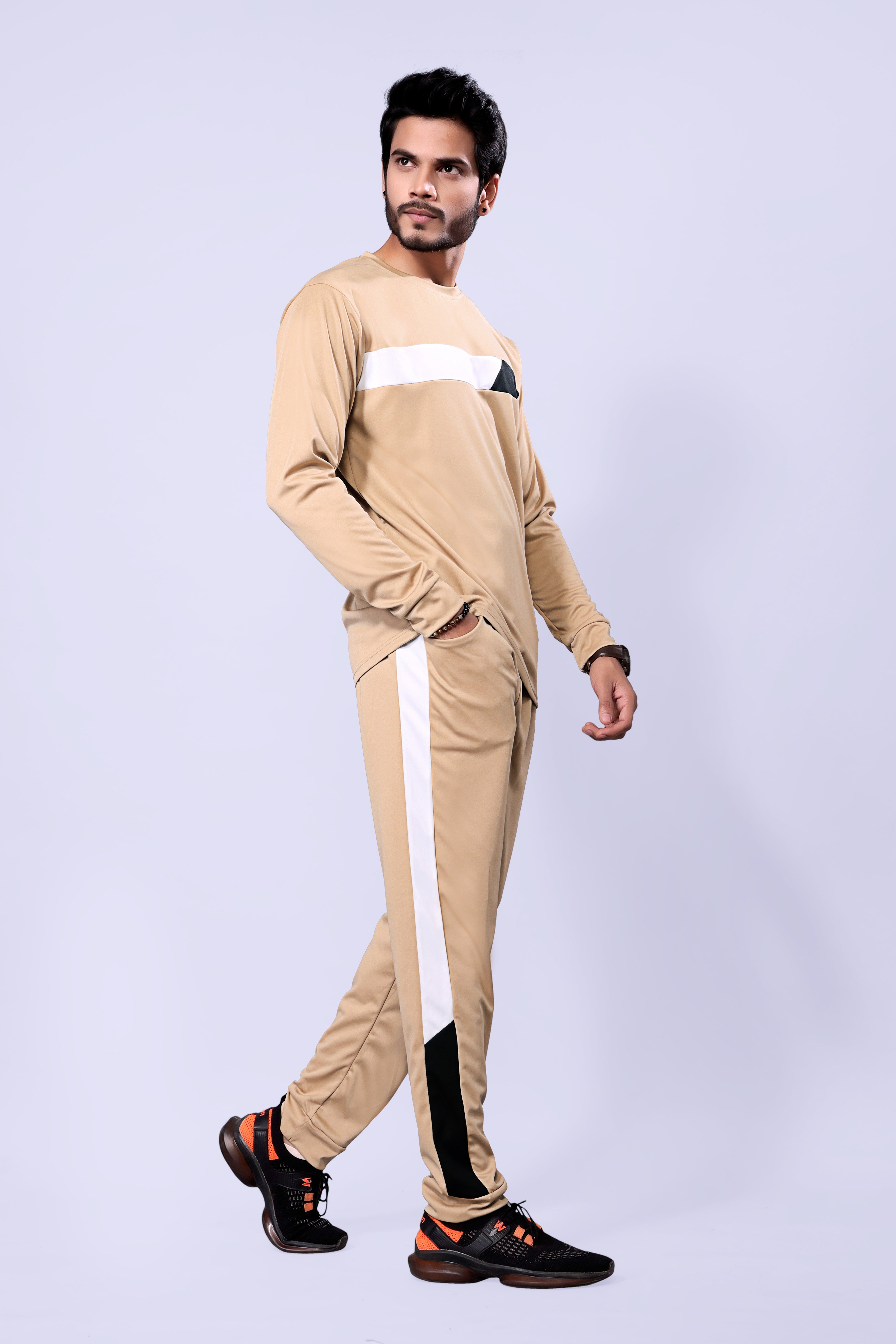 Men Mustard Stripes Pure Cotton Regular Fit Night Wear Night Suit