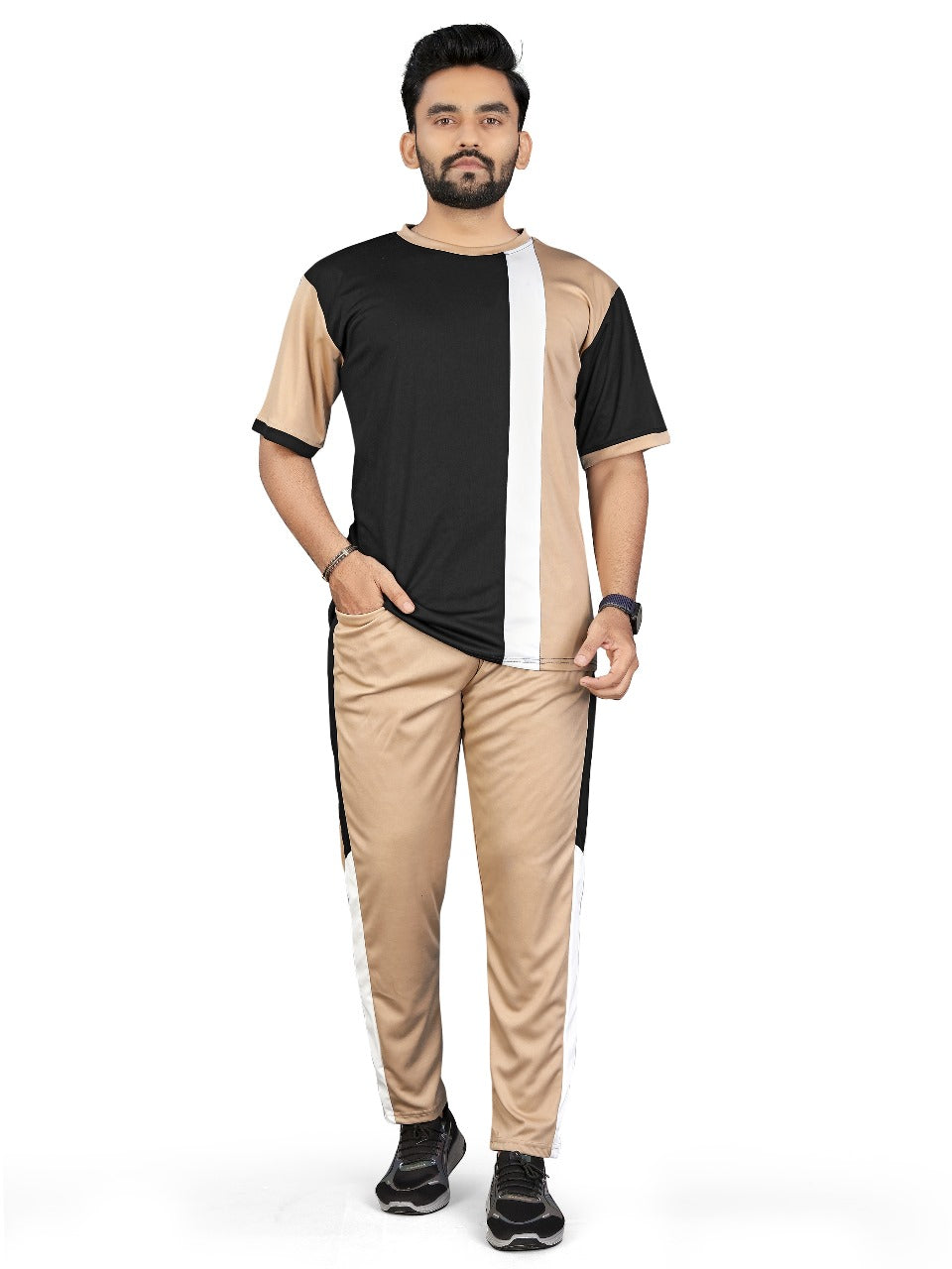 Men Mustard Stripes Pure Cotton Regular Fit Night Wear Night Suit
